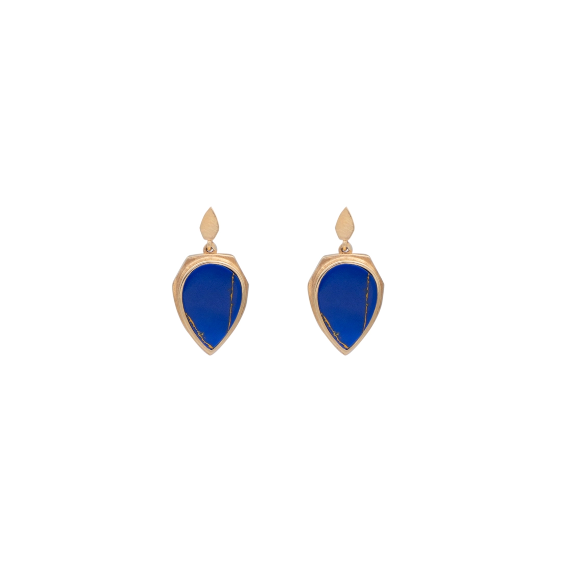 گوشواره گلستر با ترکیب سنگ لاجورد,ساخته شده از طلای 18 عیار.